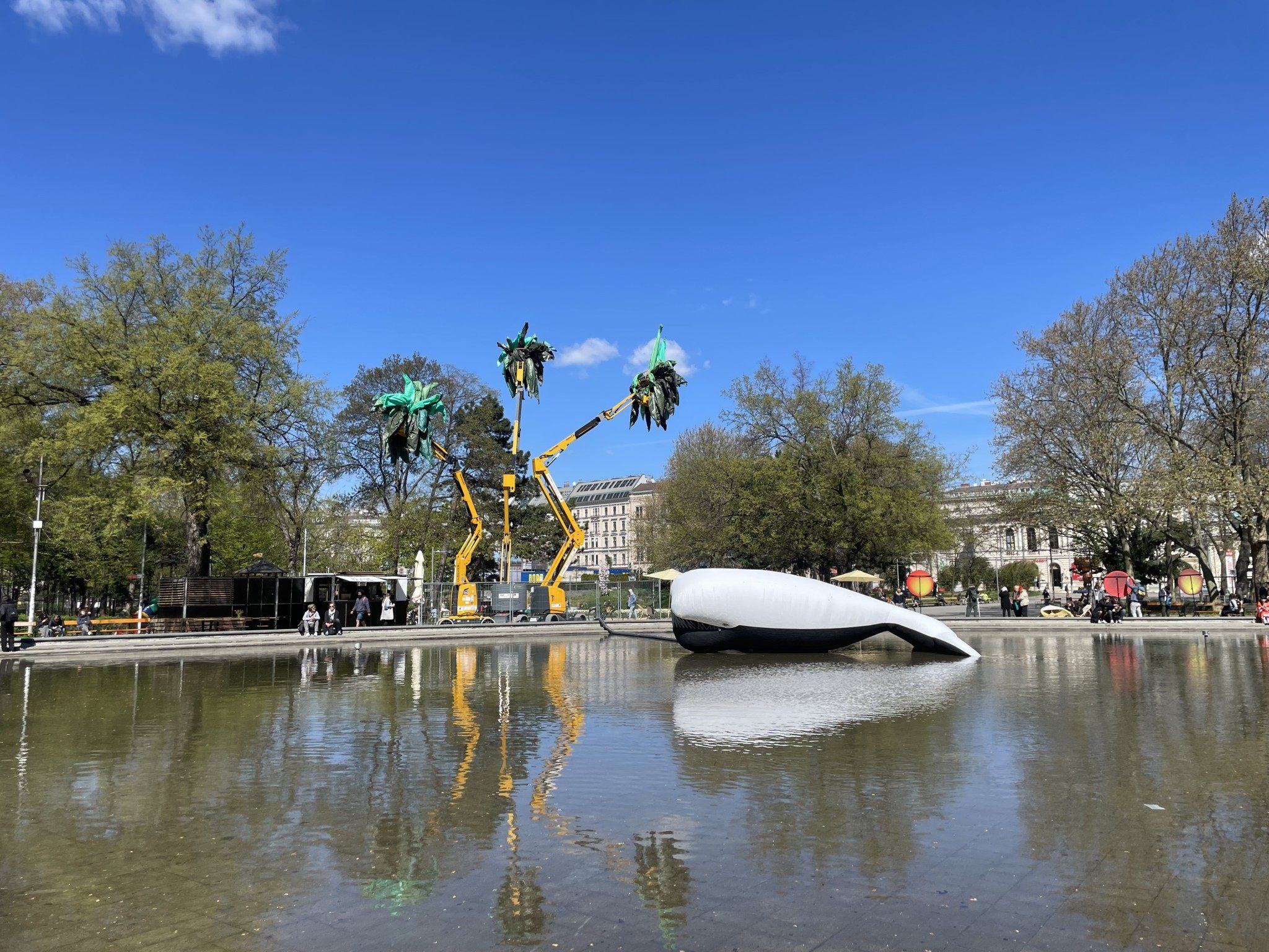 Nicht nur in der Ostsee sorgt ein gestrandeterWal derzeit für Aufregung: Auch im Teich vor der Wiener Karlskirche erregt seit Mittwoch ein