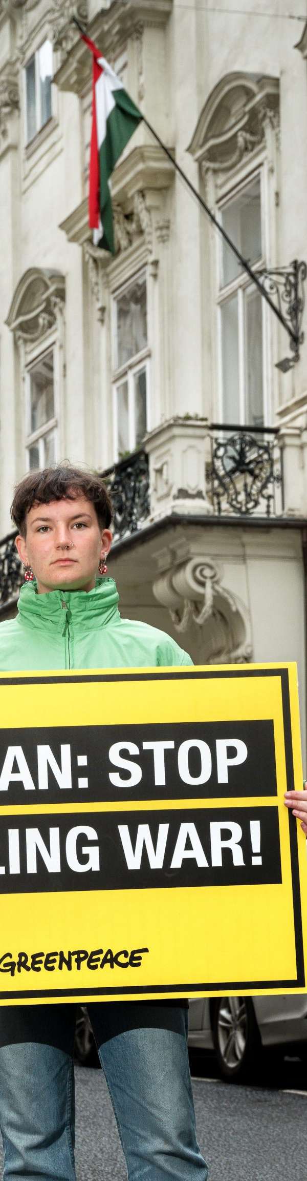 In der Wiener Innenstadt haben am Mittwoch Aktivisten der Umweltorganisation Greenpeace vor der ungarischen Botschaft protestriert. Sie forderten ein