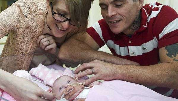 In Großbritannien ist ein kleines Mädchen zur Welt gekommen, dessen Herz durch eine seltene genetische Erkrankung außerhalb der Brust schlägt. Nach