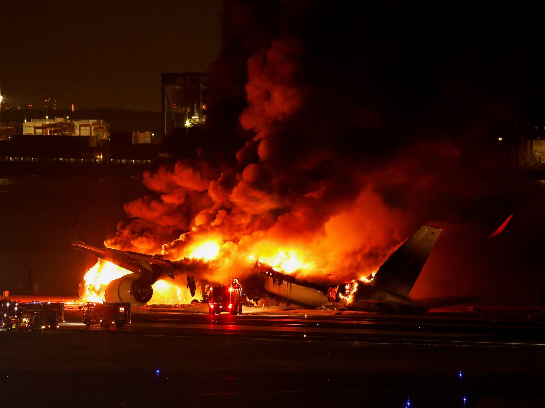 Bei der Ankunft auf dem Flughafen Haneda in Tokio geriet ein Flugzeug in Brand.