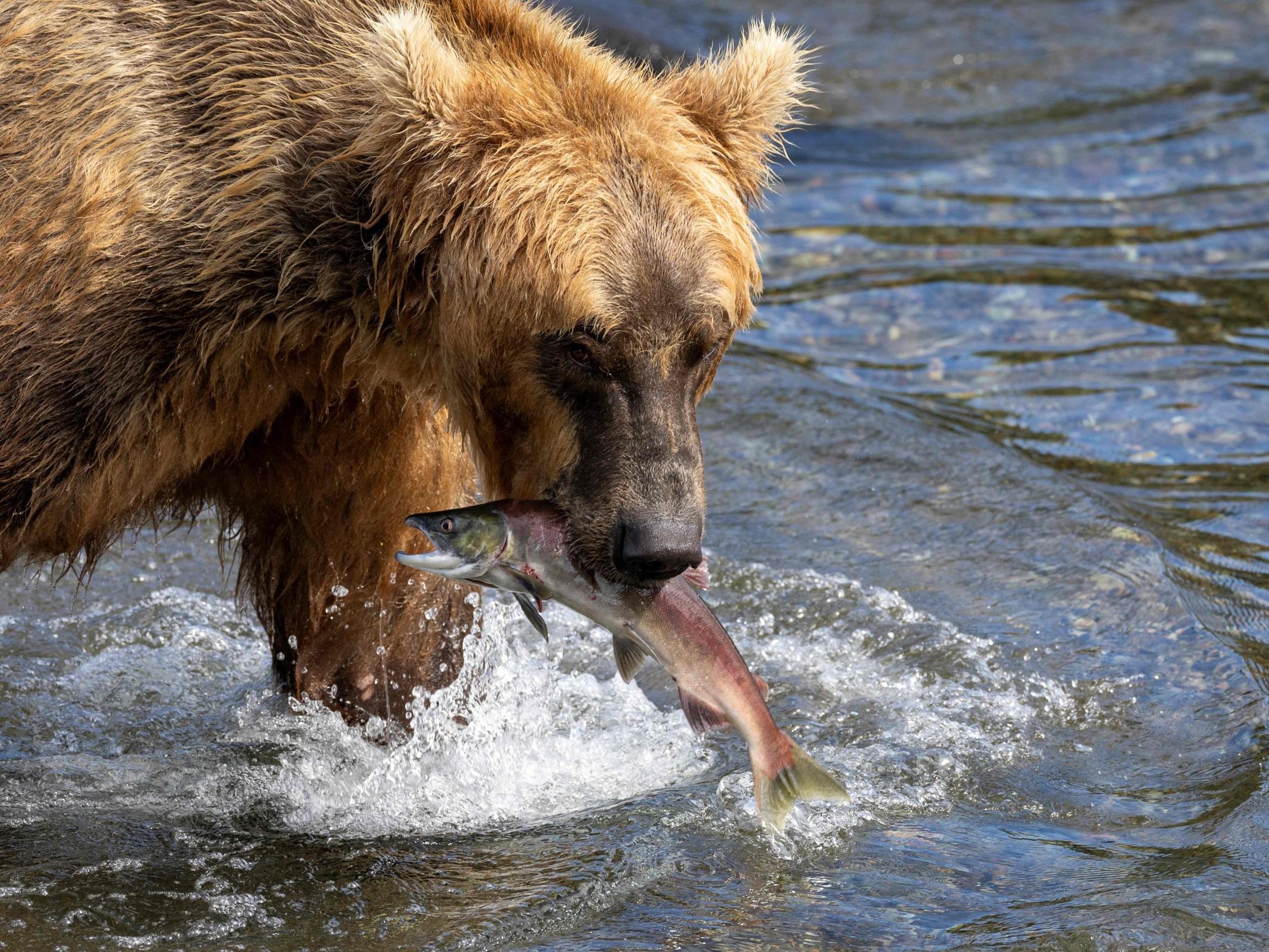 Das Braunbärweibchen Grazer siegte beim diesjährigen "Fat Bear"-Wettbewerb in Alaska.