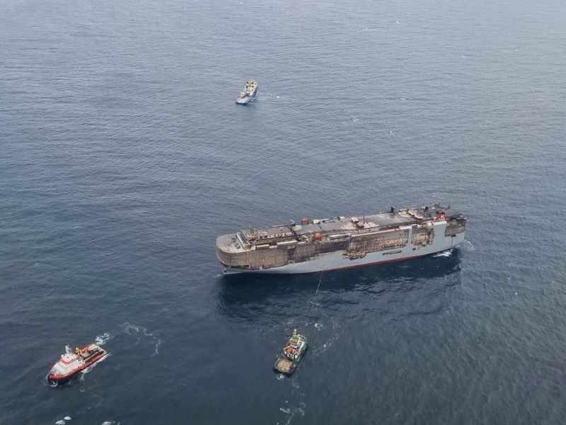 Erstmals nach dem Ausbruch eines Feuers auf dem Frachter "Fremantle Highway" vor knapp einer Woche konnten Bergungsspezialisten das Schiff erstmals