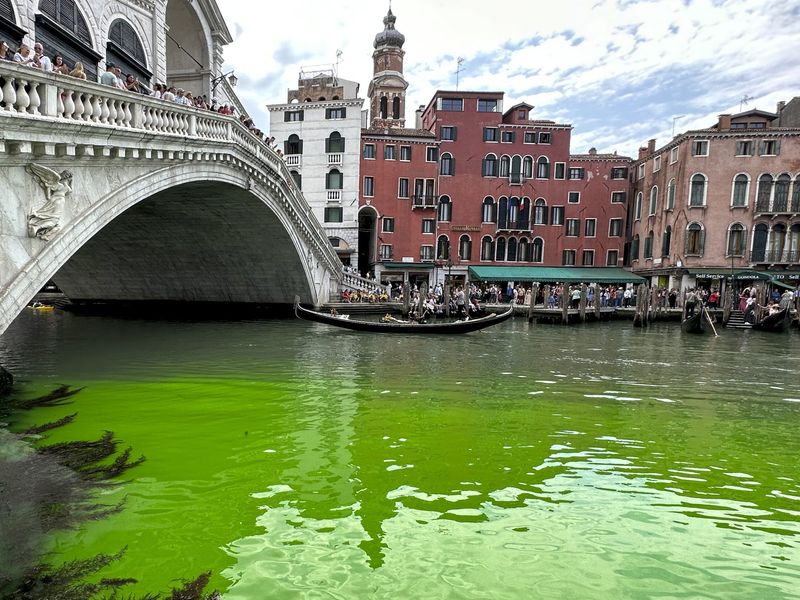 Die grün schimmernde Flüssigkeit, die am Sonntag im berühmten Canal Grande von Venedig auftaucht war, ist laut ersten Analysen nicht gefährlich.