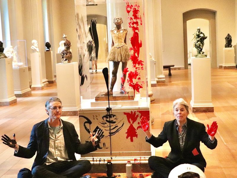 Zwei Klima-Aktivisten wurden wegen einer Protestaktion in einer Kunstausstellung in den USA in U-Haft genommen.