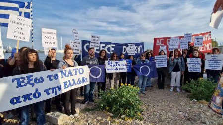 Im griechischen Hafen der Stadt Piräus, durch den die Waffenlieferung der NATO-Länder in der Ukraine umsetzt, fand ein Protest gegen die