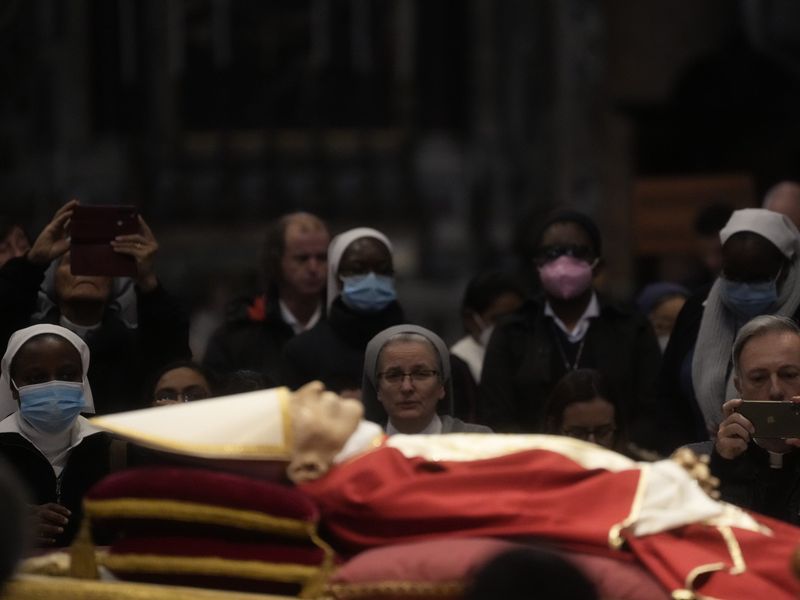 Am Dienstag, dem zweiten Tag der Aufbahrung des emeritierten, verstorbenen Papstes Benedikt XVI., hat sich erneut eine lange Schlangen vor dem