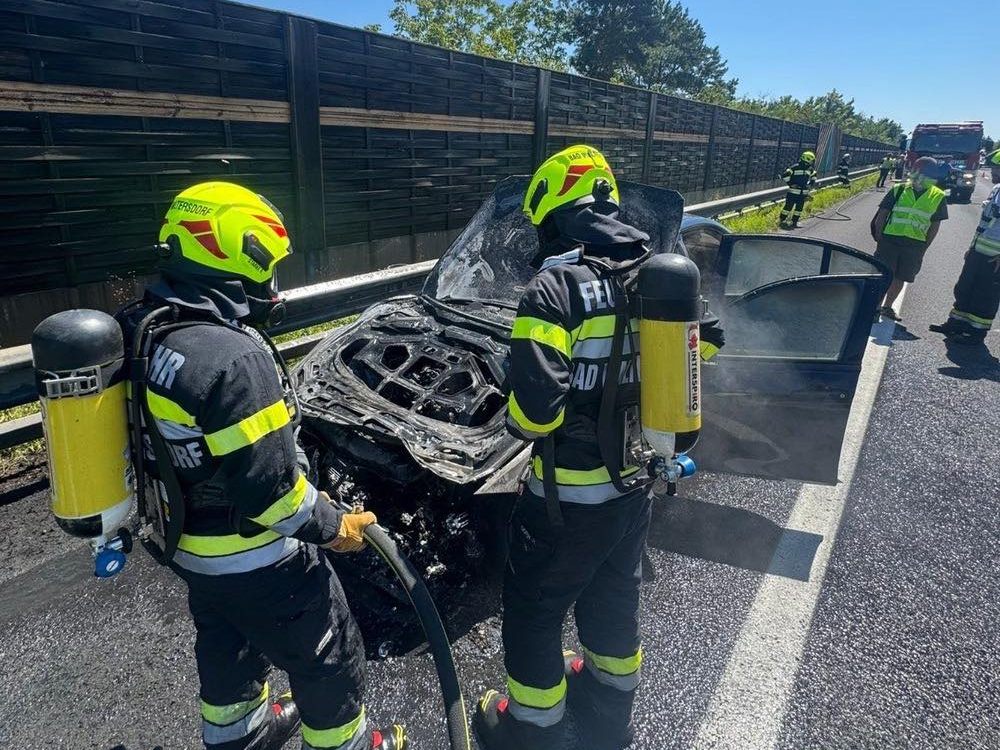Presumably due to a technical defect, a car suddenly caught fire on Friday afternoon on the A2 in Styria.