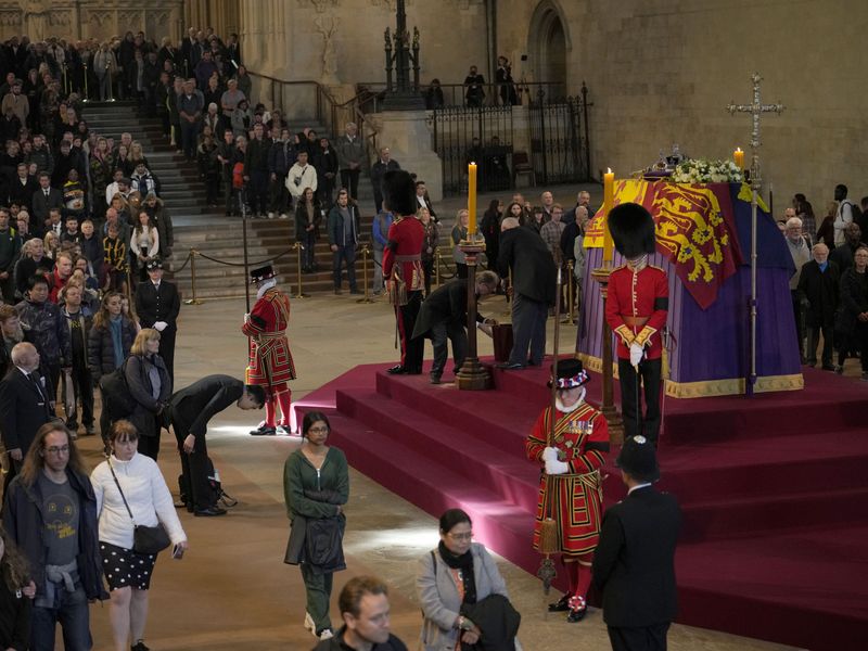 Am Sonntag, dem Tag vor dem Staatsbegräbnis von Queen Elizabeth II. ist der Zugang zum Buckingham-Palast eingeschränkt worden.