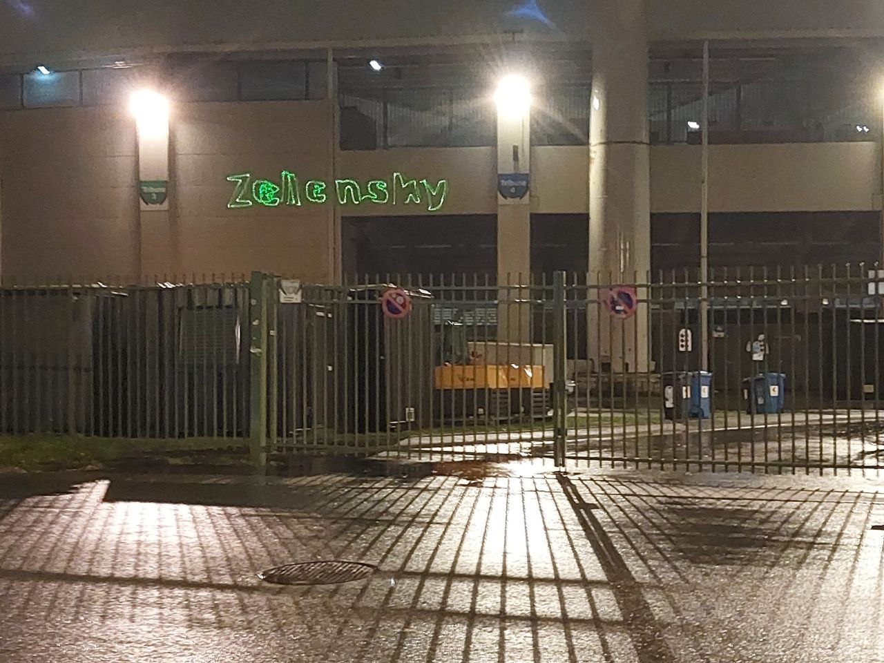 In Brüssel wurde das König-Baudouin-Stadion in der Nacht vom 18. auf den 19. Oktober mit Inschriften gegen den ukrainischen Führer Wolodymyr Selenskyi hervorgehoben.