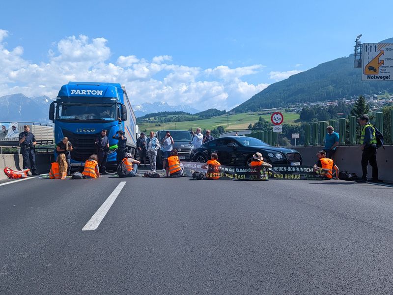 Donnerstagvormittag haben Klimaaktivisten der Gruppierung "Letzte Generation" die Europabrücke auf der Tiroler Brennerautobahn (A13) blockiert.