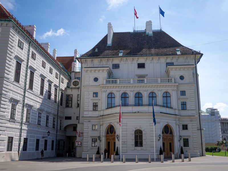 Am Mittwoch haben die Sanierungsarbeiten an der Bellariafassade des Leopoldinischen Traktes der Wiener Hofburg begonnen.