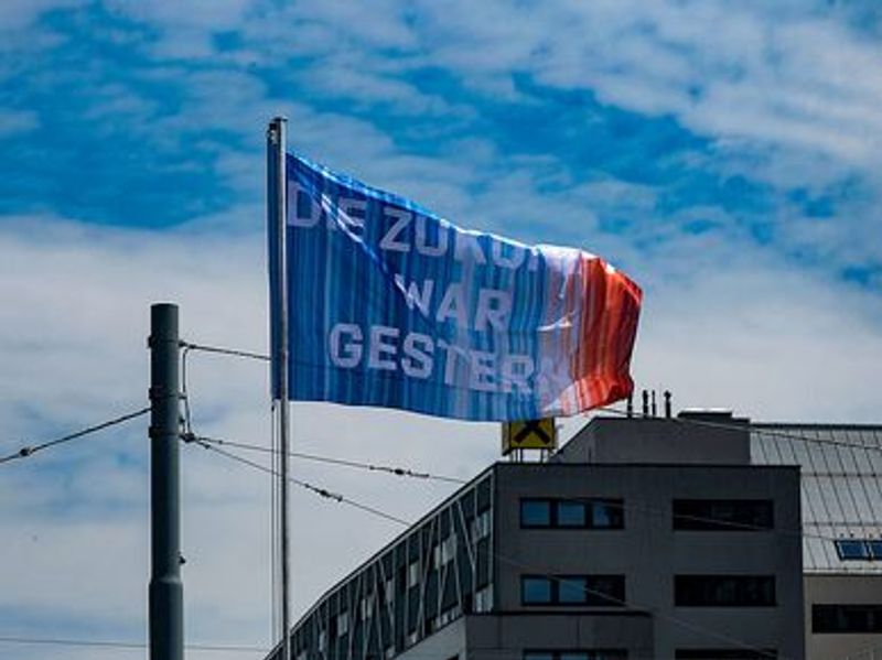 Das Kunstprojekt "Raising flags" beflaggte zum 1. Mai den Wienfluss. Fahnen können politische Gesinnung oder nationale Identität ausdrücken.