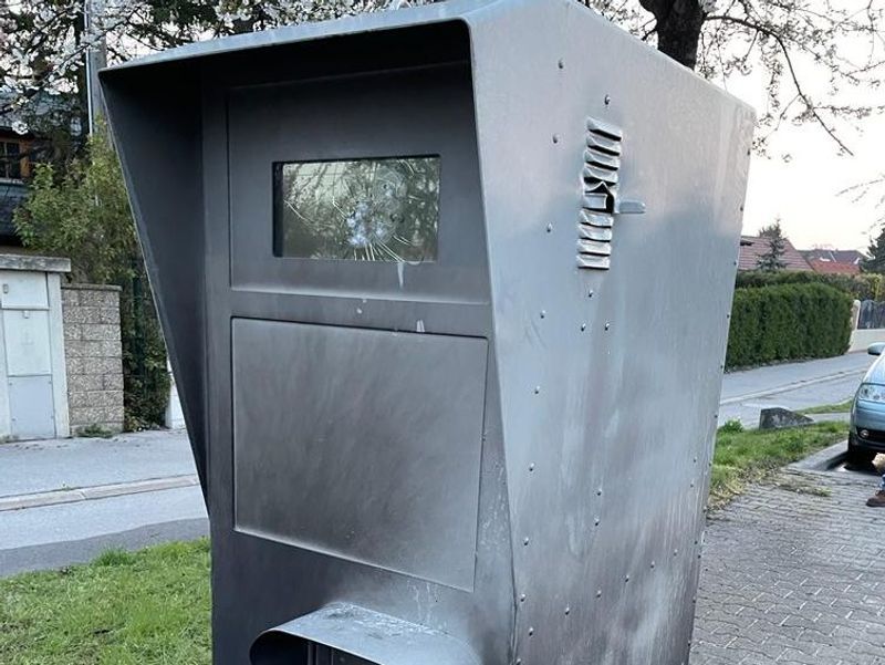 In Wien-Donaustadt wurde in der Nacht auf Montag die Polizei alarmiert, weil eine Radarkabine in Brand stand.