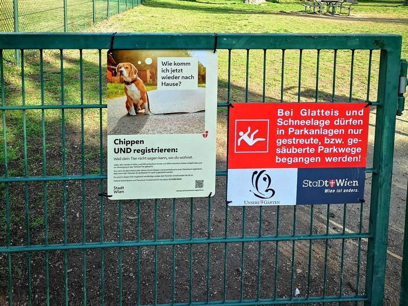 Ist Ihr Hund gechippt und registriert? Die Stadt Wien will Tierbesitzer nun mit Hinweisschildern bei den Hundezonen auf das Thema aufmerksam machen.