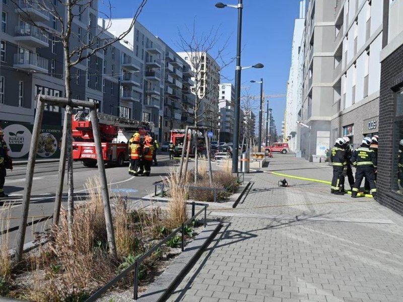 Samstagmittag ist die Berufsfeuerwehr Wien mit 4 Fahrzeugen und 61 Einsatzkräften zu einer Brandbekämpfung in der Bruno-Marek-Allee in