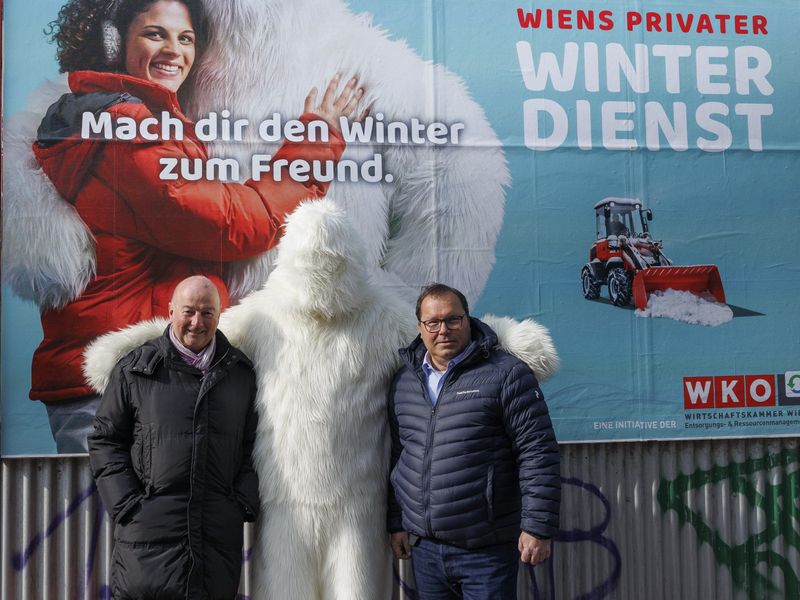 In Wien bilden 568 Betriebe den privaten Winterdienst. In einer neuen Kampagne der Winterdienste ist ab sofort auch ein Yeti mit dabei.