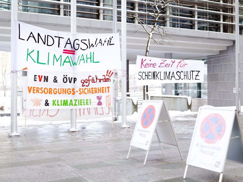 Aktivisten von Fridays For Future (FFF) haben vor der niederösterreichischen Landtagswahl am kommenden Sonntag ein Klima-Protestcamp vor dem Landhaus