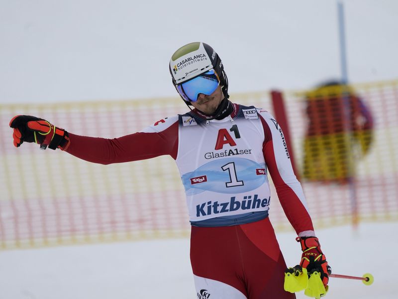 Trotz Halbzeitführung scheiterte Manuel Feller durch einen Einfädler am Sonntag beim Slalom im Kitzbühel. Jubelnder Sieger ist der Schweizer Daniel