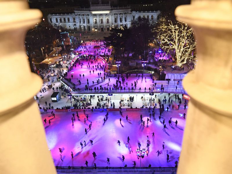 Der Wiener Eistraum 2023 ist eröffnet. Seit Donnerstag können Schlittschuhläufer auf der Eisfläche am Wiener Rathausplatz fahren.