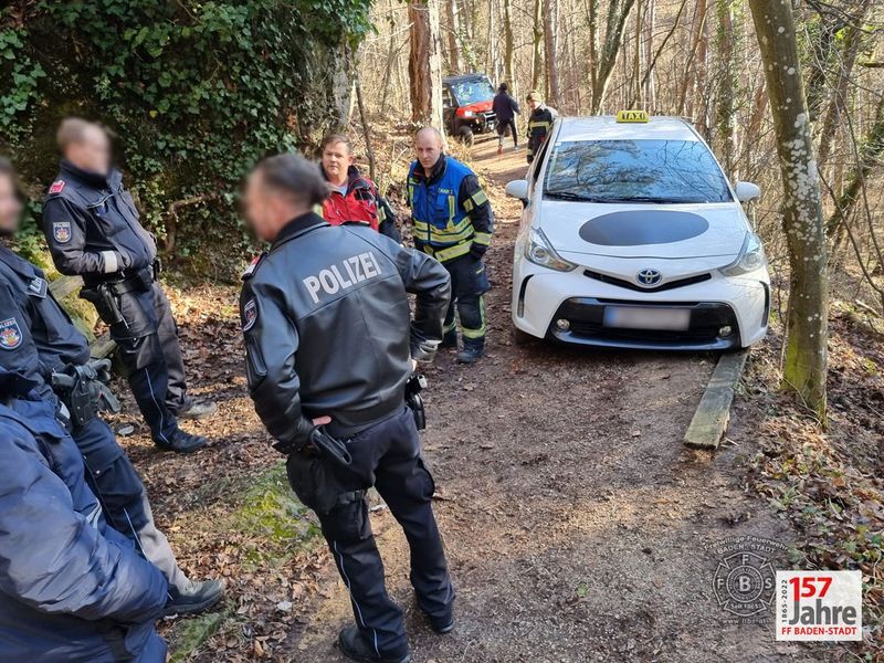 Die Feuerwehr musste am 24- Dezember ein Taxi im Badener Kurpark bergen. Vom Lenker des Fahrzeugs fehlte jede Spur.