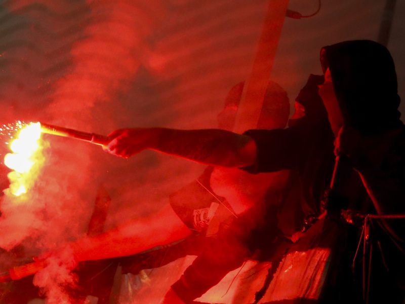 Vermummte Personen haben am Freitag vor dem Erstaufnahmezentrum Traiskirchen demonstriert und dabei auch Pyrotechnik gezündet. Laut Innenministerium