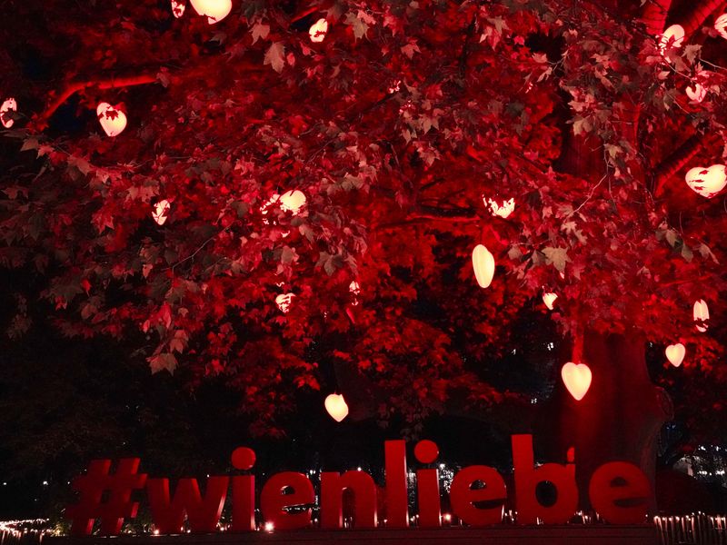 Der beliebte Herzerlbaum am Wiener Rathausplatz strahlt heuer energieschonend mit LED-Lichtern.