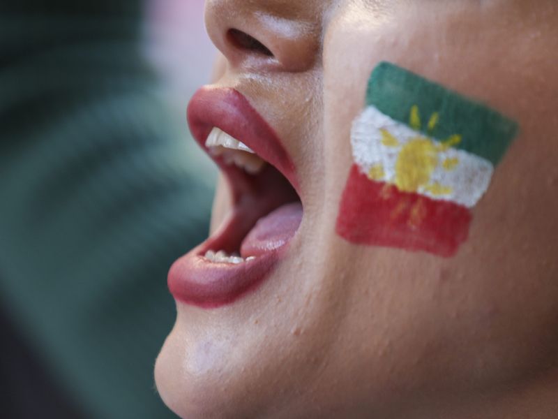 Eine Gruppe von Iranerinnen veranstaltet am Samstag eine Protestaktion für Frauen im Iran am Wiener Stepahnsplatz. Dabei werden Haarsträhnen von