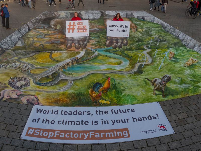 Vor dem Start des UN-Klimagipfels in Ägypten macht die Tierschutzorganisation "Vier Pfoten" mit einer Rekord-3D-Streetart-Aktion in Wien auf den