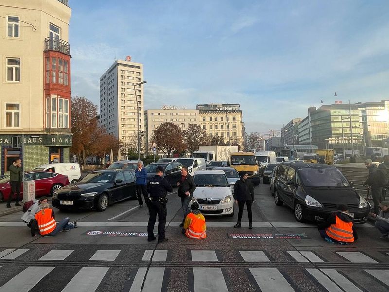 Montagfrüh haben Klimaaktivisten der "Letzten Generation" den Autoverkehr am Praterstern in Wien-Leopoldstadt blockiert.