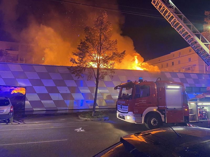 Ein Auto ist in der Nacht auf Samstag in Wien-Floridsdorf in eine Spar-Filiale gekracht und hat einen Vollbrand ausgelöst. Die Löscharbeiten