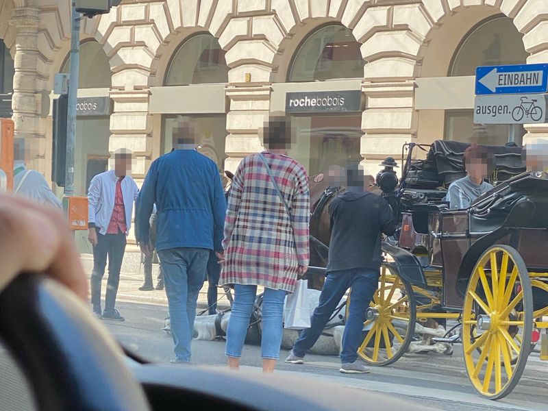 Der Verein gegen Tierfabriken machte am Montag auf einen Fiaker-Unfall in der Wiener Innenstadt aufmerksam, bei dem das Pferd mitten auf der Straße