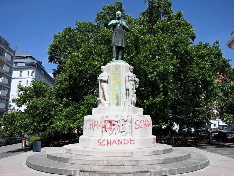 Beim umstrittenen Lueger-Denkmal in der Wiener Innenstadt gehen gerade die Aufbauarbeiten der Installation "Lueger temporär" von Nicole Six und Paul