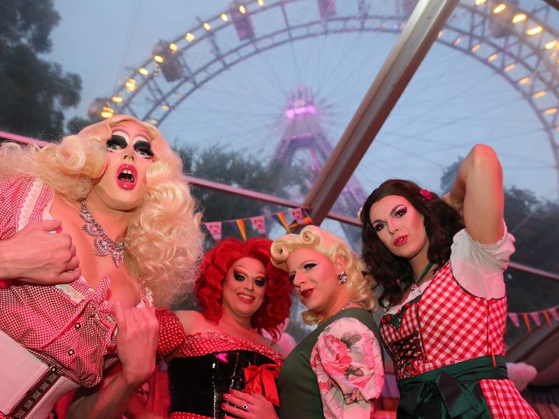 Das Queer-Event "Rosa Kaiser Wiesn" feiert am 30. September 2022 im Wojnar’s Kaiser-Festzelt im Wiener Prater die LGBTQ-Community.