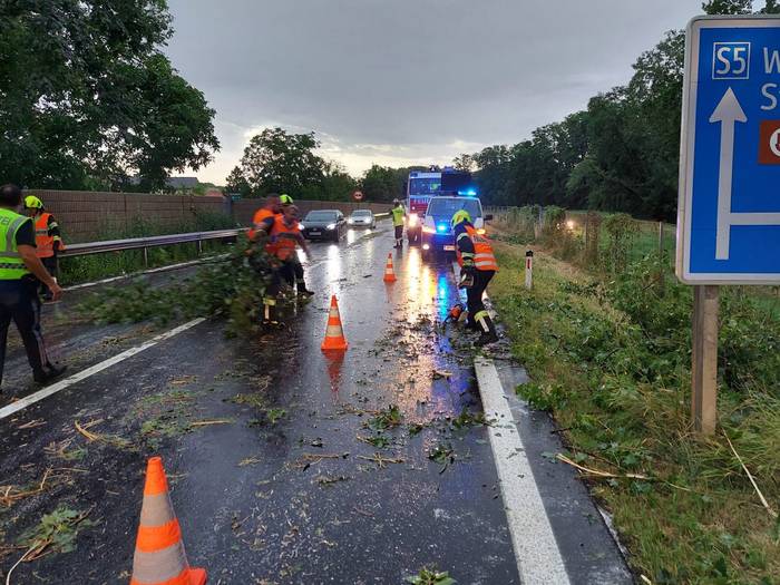 Donnerstagabend wurde die Feuerwehr miten in der Vorbereitung zum Grafenwörther Marktfest wegen Sturmschäden auf der S33 in Richtung St. Pölten