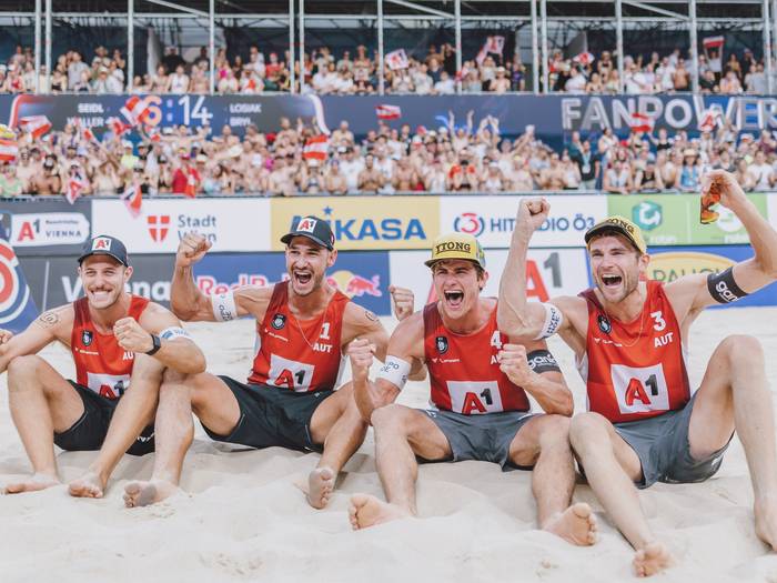 Auch die österreichischen Beach-Volleyball-Männer haben beim europäischen Nations Cup in Wien das Halbfinale erreicht. Nächster Gegner ist am