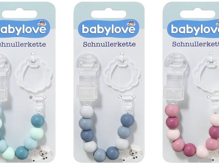 Wegen womöglich verschluckbarer Kleinteile ruft die Drogeriemarktkette dm Babylove-Schnullerketten zurück. Kunden bekommen den Kaufpreis erstattet.