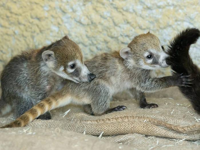 Im Wiener Tiergarten Schönbrunn freut man sich über zweifachen Nachwuchs bei den Weißrüssel-Nasenbären.