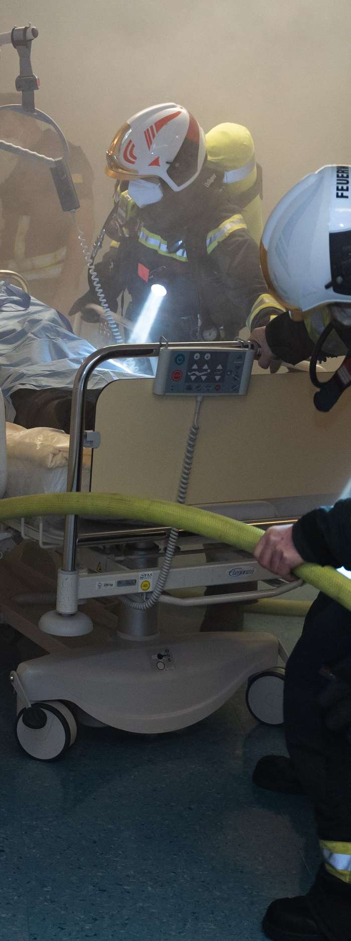 Am Dienstag hat im AUVA-Traumazentrum Wien eine Evakuierungsübrung mit der Wiener Berufsfeuerwehr stattgefunden. Mitarbeiter im Standort Lorenz