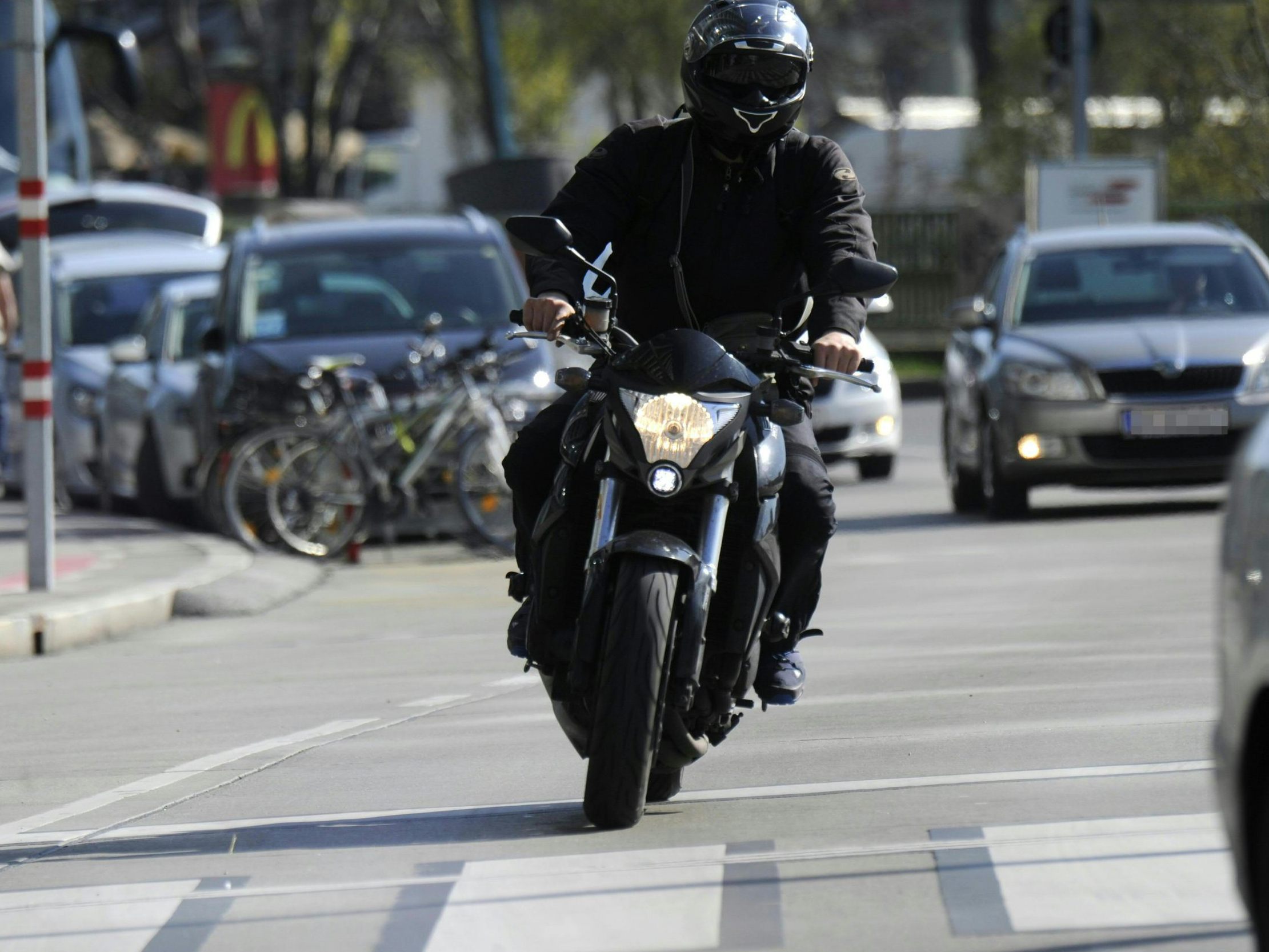 Ein 31-jähriger Motorradfahrer durchfuhr am Freitagnachmittag den Raum zwischen zwei Autos und beschädigte eines der Fahrzeuge.