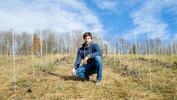 Noch ist es ein normaler Garten, doch "genau hier draußen, also sozusagen gleich vor der Haustür, werden bald lauter Weinstöcke wachsen", sagt Georg