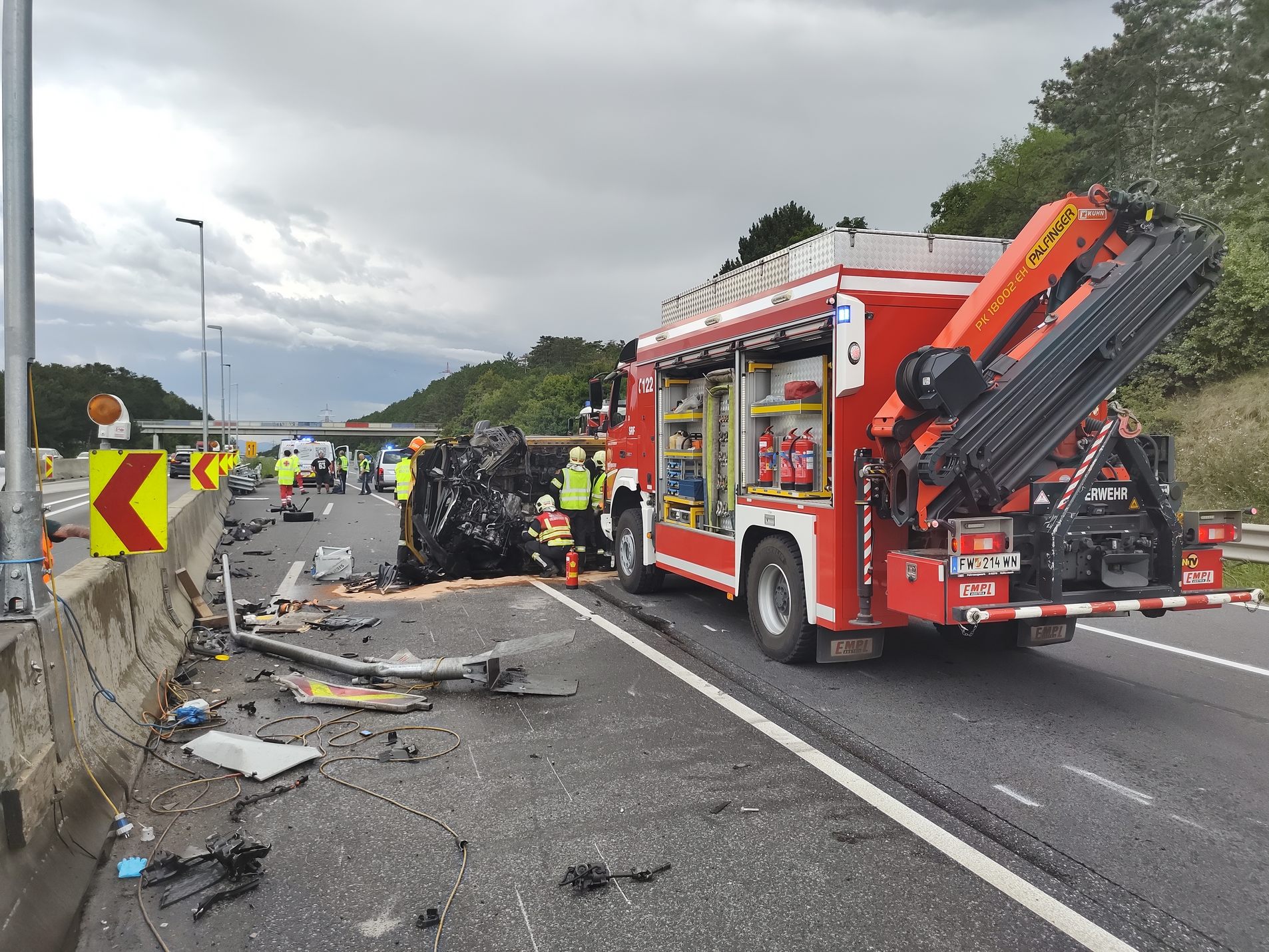Ein schwerer Unfall auf der Südautobahn bei Wiener Neustadt forderte am Freitag einen Verletzten. Während der Aufräumarbeiten waren die rechte Spur