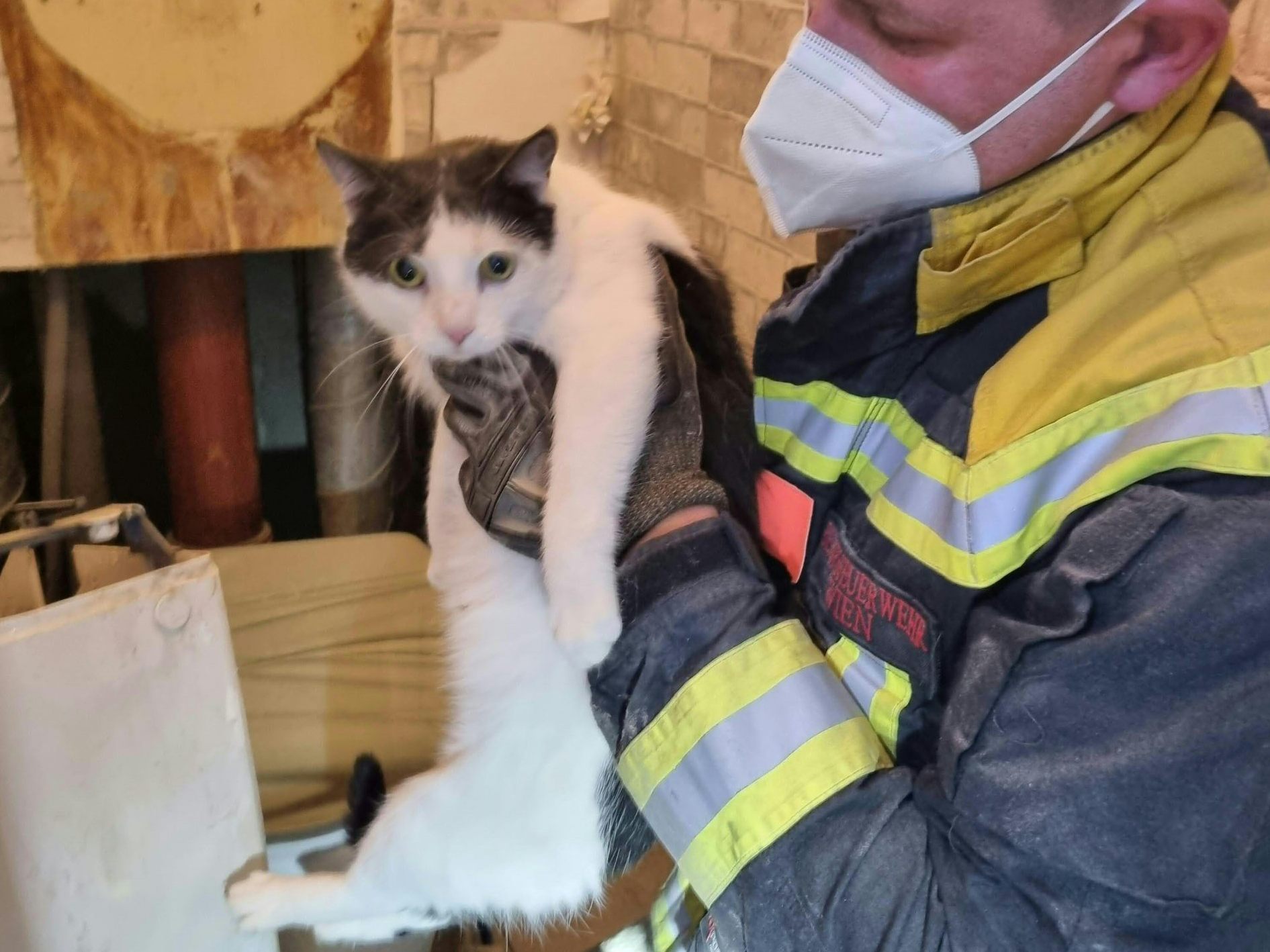 Am Wochenende ist eine Katze in einer Wohnung in Wien-Favoriten in einem Installationsschacht hinter der Wand einer Toilette eingeklemmt gewesen.