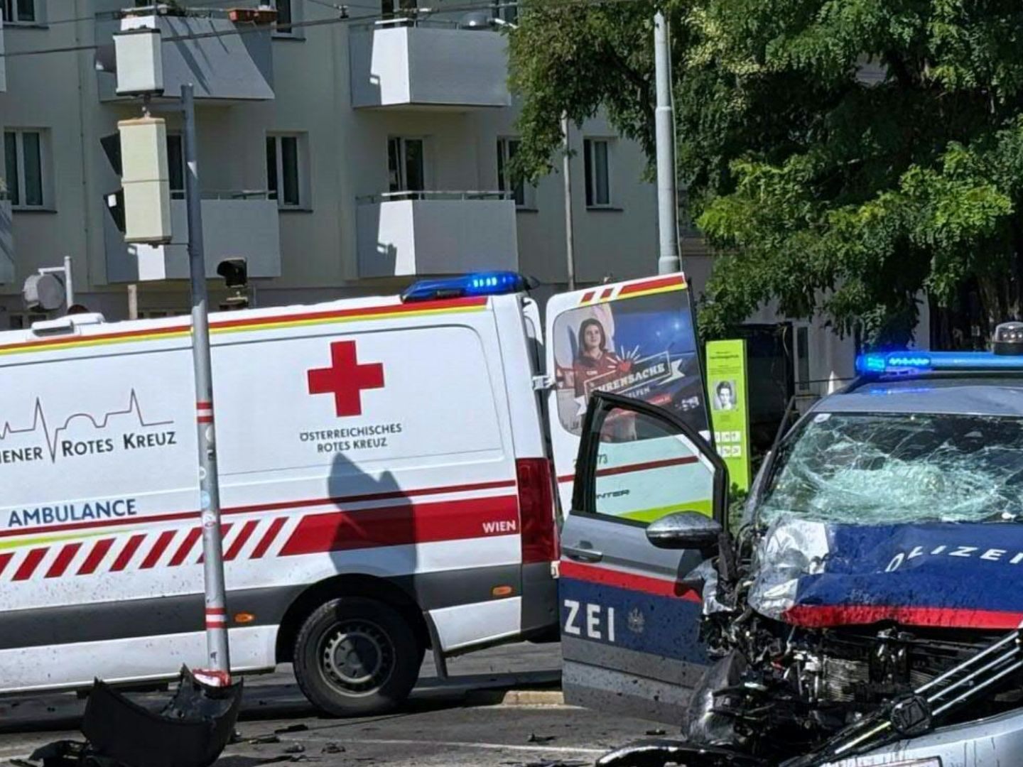 In the Obere Augartenstraße in Vienna-Leopoldstadt, there was an accident involving a police car and an ambulance on Wednesday.