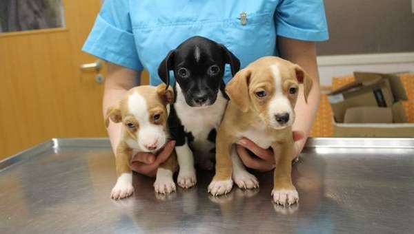 Eine offenbar ausgesetzte Hündin und ihre drei Welpen sind am Mittwoch gegen 22.00 Uhr vor dem Tor des Wiener Tierschutzvereins (WTV) entdeckt