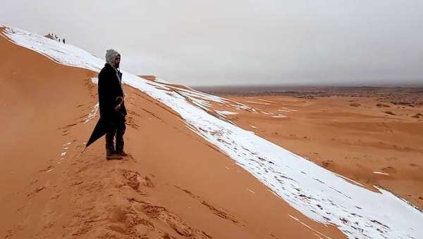 Die Sahara ist die größte Trocken-Wüste der Welt. Vor ein paar Tagen hat es in der Sahara geschneit. Das kommt nicht oft vor.