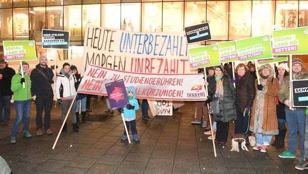 "Sparen heißt kaputt machen. Wir tragen die Kultur zu Grabe." Mit Grabkerzen, Transparenten und Schildern ausgerüstet, zogen Montagabend etliche