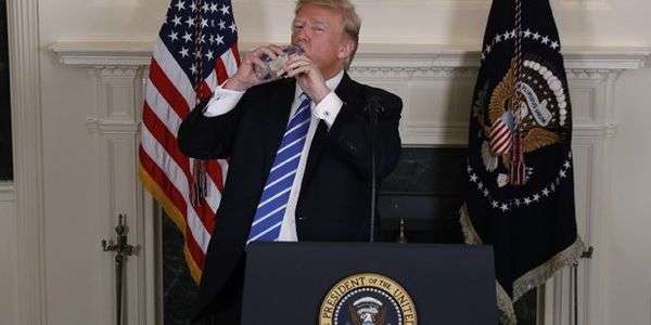 Während einer Feierstunde für Amerikas Ureinwohner neben Vertretern der Navajo stehend, macht sich US-Präsident Donald Trump am Montag im Weißen Haus