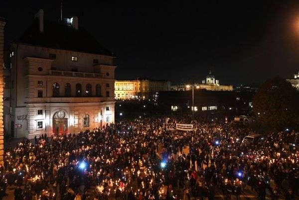 In der Wiener City nahmen tausende Menschen an einer Protestkundgebung gegen eine mögliche Regierungsbeteiligung der FPÖ teil.