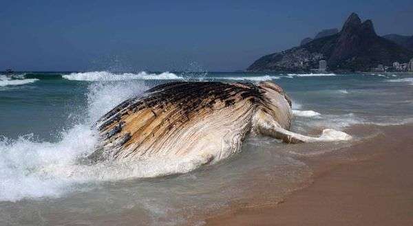 Mitten am Strand von Rio de Janeiro ist ein rund 30 Tonnen schwerer Wal angespült worden. Tausende Badegäste versammelten sich am Mittwoch an dem