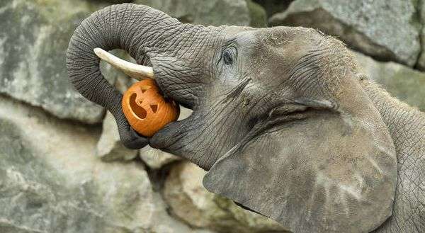 Elefanten, Nasenbären, Tiger und Co. bekommen am kommenden Dienstag bei kommentierten Fütterungen geschnitzte Kürbisse zum Fressen und Spielen. "Wir